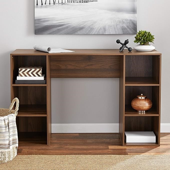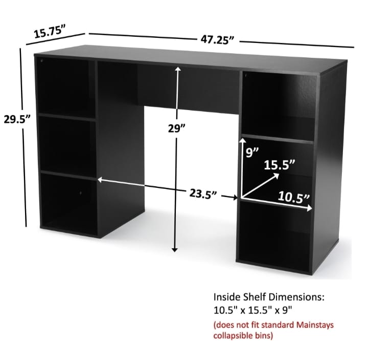 Create a functional and stylish workspace with the Mainstays 6 Cube Storage Desk. Featuring six open compartments for easy organization, this sleek desk is perfect for laptops, writing, or small desktop PCs. Its versatile design fits seamlessly in home offices, living rooms, and more. Available in White,Black,and Canyon Walnut finishes.