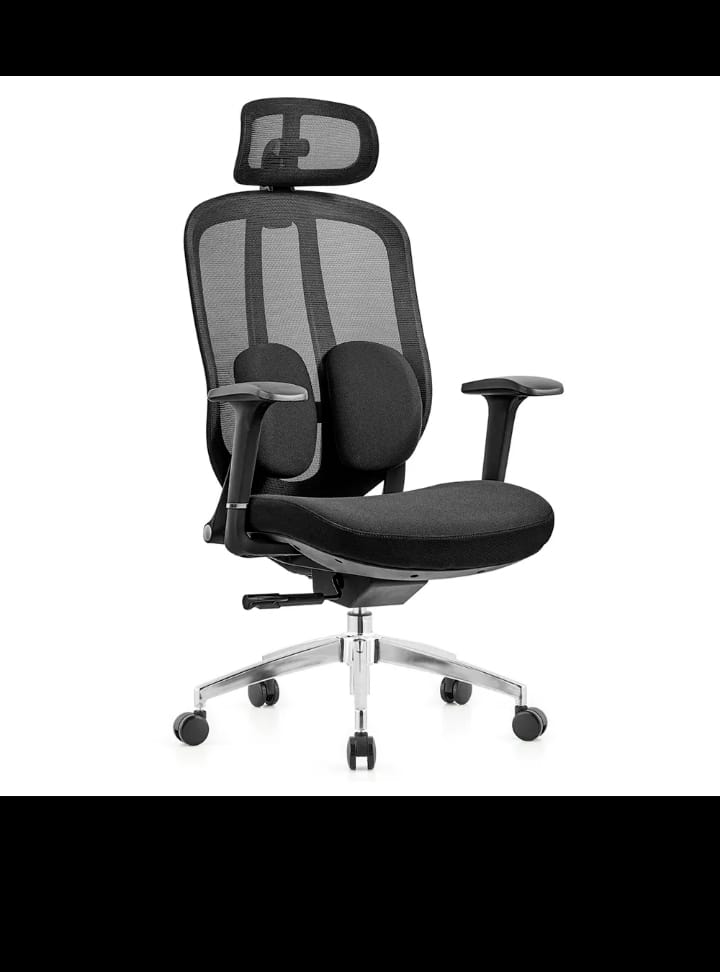 Ergonomic Design: Features a high back with an adjustable headrest and a dynamic lumbar support cushion to promote good posture and reduce back strain.
