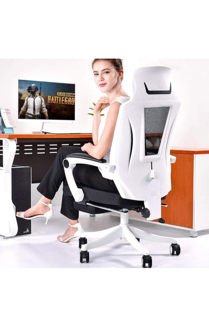 The modern black-and-white design adds a sleek aesthetic, while the sturdy chrome base ensures stability and durability. With its smooth recline function and supportive structure, this chair helps maintain proper posture and reduces fatigue throughout the day.
